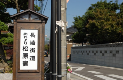 長崎街道は、江戸時代に小倉から長崎までを結んだ五十二里の街道。松原は長崎街道の二十五宿のひとつで、陸路・海路の交通の要衝として古くから栄えていたんですって。長崎に入ってきた情報をいち早く江戸へ伝えるための道。ロマンを感じますよね。