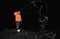そして2投目を投げ入れ5分ほどでまた、「掛かったよ」の声が。カメラを構えてミズイカを釣り上げる瞬間を・・・