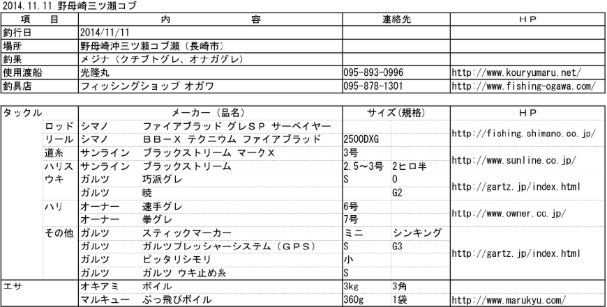 11月11日に長崎市野母崎沖の三ツ瀬に釣行した。船長の話では、水温が安定しないせいか、全体的に食い渋っているとのことである。
