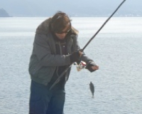 勝手に私がセンチメンタルな気分になって4人を見ていたら、1匹、釣れた! 1人1匹。良かった。みんな笑顔になりました。