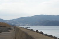 気をとりなおして、ふと、堤防に目をやると、釣り竿だけが立てかけられていました。釣り人、いづこに。寒かったから、釣り糸を垂らして、車で待機中でした。車中から風に揺れる釣り糸の様子を伺う――視力も鍛えられそうです。オジさんの話によると、去年は1月頃からイカが釣れて、オジさん自身も多いときで一度に4杯釣れたそう。イカが釣れるハイシーズンは4~5月頃だけど、こちらは比較的、早い時期から釣れるとのこと。