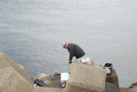 それにしてもこのテトラポットを、釣具一式を持って渡り歩いたとは。しかも高所!! 「毎週来ているから慣れたモンだよ」とひとこと。釣り人は逞しい。