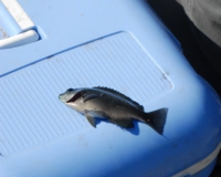 到着とほぼ同時に、波止場で釣りをしていたオジさんが「小さいけど、アラが釣れたよ」と見せてくれました。アラは味噌汁に入れると美味しいですよね~って、食べることばかり考えてしまいます。