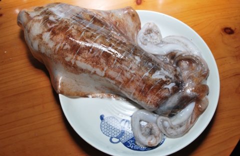 まず、その大きさに驚きました。イカを直径30cmの皿にのせてみると大きくはみ出しています。