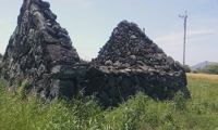 五島を代表するふるさとの味と言えば「カンコロ餅」もそのひとつです。基本的に海風が当たる場所に作ることは他地区と同じですが、富江町のカンコロ棚は土台と壁の部分を溶岩石で積上げます。他地区はほとんど竹を組合せて作っています。