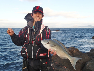 黄島大美漁の「テボ流し」 テボ流しで仕留めた41cmの尾長グレ