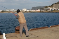 アジ狙いのオジさんに話を聞いてみました。オジさんのお住まいはすぐそことのこと。他の釣り場に浮気することなく、ねずみ島一筋とか。「今日は風もあるし、釣れんね~」と少々あきらめムードが漂っておりましたが、竿さばきはお見事!でした。