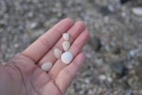 と、いうことで足元の砂浜を見てみると、貝殻発見。あ~、なんかこの感覚、懐かしい。私は、生まれも育ちも長崎なので、昔から海はとても身近な存在です。小さい頃、家族とよく海で遊んでいたなぁ。今は、汚れちまった大人……。なんとなく、センチメンタルな気分になりました。