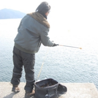 仲良く釣りをする4人に、突然割り込んできたオバさん(私)のプチ取材を快く引き受けてくれた。アラサーとみた。今日は9時頃に来て、クロ狙い。もうすでに3匹釣っていました。1人1匹を目指すなら、あと1匹ほしいところ?