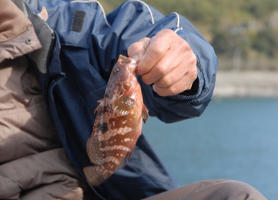 釣れた! 私が「アラカブですか?」と聞くと「似ているけど、”アコ”っていう魚だよ」と教えてくれました。釣り始めて1時間弱で、2匹め。煮つけにすると旨いそうです。