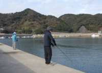 さきほどの女性と一緒に来ていた男性2人組。手前の方にもちょいとインタビュー。今日はスズキ狙いとか。「でもまだ釣ったことがナイですけど(笑)」とのこと。でもDVDを観て予習したらしい。イメージトレーニングは大事っていうし! あとは釣るのみ! イメトレと現実が合致することを願いつつ、田結港を去ったのでした。