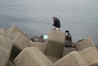それにしてもこのテトラポットを、釣具一式を持って渡り歩いたとは。しかも高所!! 「毎週来ているから慣れたモンだよ」とひとこと。釣り人は逞しい。