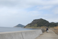 気をとりなおして、ふと、堤防に目をやると、釣り竿だけが立てかけられていました。釣り人、いづこに。寒かったから、釣り糸を垂らして、車で待機中でした。車中から風に揺れる釣り糸の様子を伺う――視力も鍛えられそうです。オジさんの話によると、去年は1月頃からイカが釣れて、オジさん自身も多いときで一度に4杯釣れたそう。イカが釣れるハイシーズンは4~5月頃だけど、こちらは比較的、早い時期から釣れるとのこと。