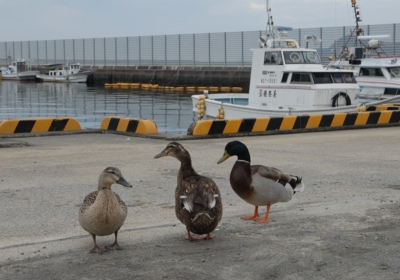港へ行くと、釣り人ではなく、カモがお出迎え。たとえ釣りで坊主になっても、カモがそっと癒してくれそう。
