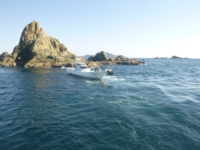 私たちは、6名でコブ瀬に上礁した。それぞれが釣り座についたところで、私は空いているポイント「水道」で竿を出すことにした。