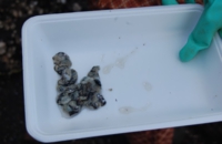 さて、セッカの打ち方ですが、尖った道具の先の方で、3センチくらいの小さな殻の端の方を打ちます。間違って、殻の真ん中を打つと、中側の潮水と殻が顔に直撃!なかなか上手くいきません。おまけに、冷たい海からの風は、全身を凍らせ、思ったように打つことだ出来ませんでした。今回は、ちょっとだけ獲れました。