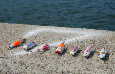 「釣果が一番良かった疑似餌はどれですか?」と質問したところ「コレとコレかな」といって並べ直してくれました。右が1位、左が2位。この色、この形にイイダコくんはグッくるようです。