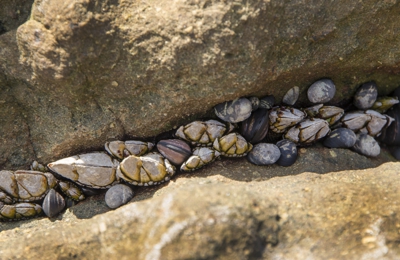 (おがみぜ(カメノテ)厳原港の磯にて)そういう時にお世話になるのが、生産者市場の鮮魚コーナー。さっそく覗いてみると、対馬ではオガミゼと呼ばれるカメノテや、かた貝と呼ばれる松葉貝、サザエ、トコブシなど磯ものであふれていました。