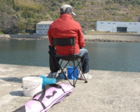 団塊世代(と見た)のおじさん。クロを釣りに、久しぶりに来たそう。おじさんによると「以前にも何回か来たけど、今日は人が少ない方だよ」。(右)