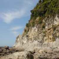 ちょいと海の方へ下りてみました。それにしても、すごい崖。