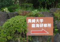 まずは、子々川への道案内。長崎市街地から、国道206号線を時津町→琴海町方向に行くと、子々川の交差点があるので、そこから右折します。港まで車ですぐですが、道幅が少々狭いのでご注意あれ。この長崎大学臨海研修所の看板が目印。