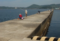 以前、釣り人に聞いたところはココでした。ホントに「長崎水産」の建物の真向かいに、釣りスポットがありました。今の季節、イカが釣れることでも有名なんですって。