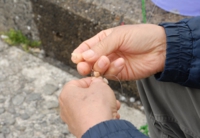 面白オジさんのエサはエビ。細かい手作業だ~。不器用な私だったら、この時点でもう、がんばランドに直行しそう(笑)。
