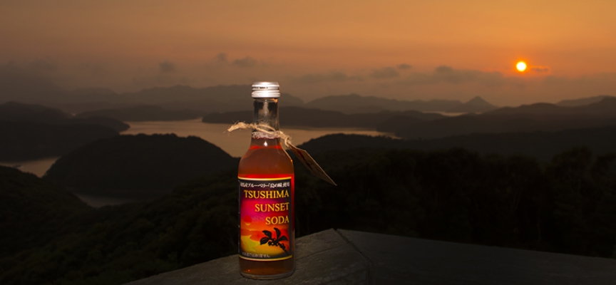 長かった梅雨も終わり、暑い夏がやってきました。この季節は冷たい清涼飲料水を飲む機会も増えますが、甘いものは砂糖が多く含まれているので、出来るだけ控えたいもの。そこで今回ご紹介するのは、対馬産のブルーベリー「島の瞳」を使ったTSUSHIMA SUNSET SODA。浅茅湾に沈む夕陽の色を模したというだけあってきれいな色ですね。