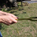 さらに中へ入って行くと、立派なナンヨウスギの木が目に入ってきました。このナンヨウスギは、旧所有者の薩摩氏の先祖が台湾から鉢植えとして持ち込まれたもので、かつては2本あったそうですが、1本は台風で倒木したそうです。落ちている葉を使って、引っ張り合いっこ遊びもできますよ。大きな木の下で、ベンチに座り風情豊かな建物を眺めているだけで心が落ち着くようです。ベンチ横にある体験コーナーでは、五島伝統民芸バラモン凧を気軽に作ることができる「ばらもん絵付け体験」やオリジナルハンカチを作れる「ハンカチ草木染体験」があります。どちらとも要予約になります。世界に1つだけの五島民芸品を作ってみるのも楽しそうですね。
