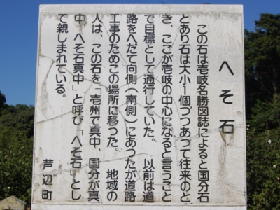 *へそ石 ・・・郷ノ浦港から国道382号線を勝本方面へ。
