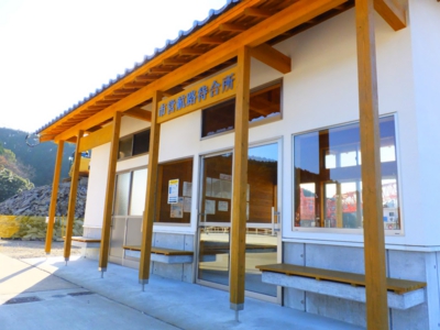 美津島町鶏知の長板浦(ながいたうら)、先日開院したばかりの対馬病院の方向へと進むと小さな船着場があり、待合所が見えてきます。