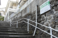 韓国語、ドイツ語などのあいさつ言葉を表記しているのだが、いくら簡単なあいさつといえど、いっぺんには覚えられん……。困ったと思ったところに共通語=オッハーが。オッハー!? 慎吾ママ!? 日本を代表するアイドルはギャクもグローバルスタンダードだったとは。 エリア内に掲げてある地図看板に「相生地獄坂」の文字を発見。ホントの地獄には行きたくないけど、どうせ味わうことになるなら、苦しみを先に、後で楽しみを残す。ということで、とりあえず地獄へ行ってみることにしました。急な階段の右側には、脅し文句の「相生地獄坂」の看板が。この先は苦しみばかりか。やや不安を感じつつ、とりあえず前へ進むことに。