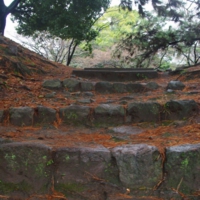 さて、今年の初市は3月3日から3月11日まで開催されています。私が出かけた日はあいにくの雨…。しかし、会場の「霊丘公園」の駐車場に車を停め石段をのぼると…。