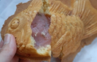 ジャジャ~ン。春限定のたこやきならぬたいやきです。大村公園観光案内所近くで見つけました。ピンク色の餡は、そう、さくらあん❤ 出来たてを購入できたので、皮がパリッとして美味。お花見気分をまた一段と盛り上げてくれそう。